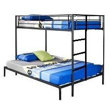 Patul metalic Trio Family BEL 02 este ideal pentru familii, camere de copii, pensiuni sau spații de cazare unde este nevoie de mai multe locuri de dormit într-un spațiu compact. Configurația practică, cu pat matrimonial la nivel inferior și pat single la nivel superior, permite utilizarea eficientă a spațiului și oferă confort pentru întreaga familie.
