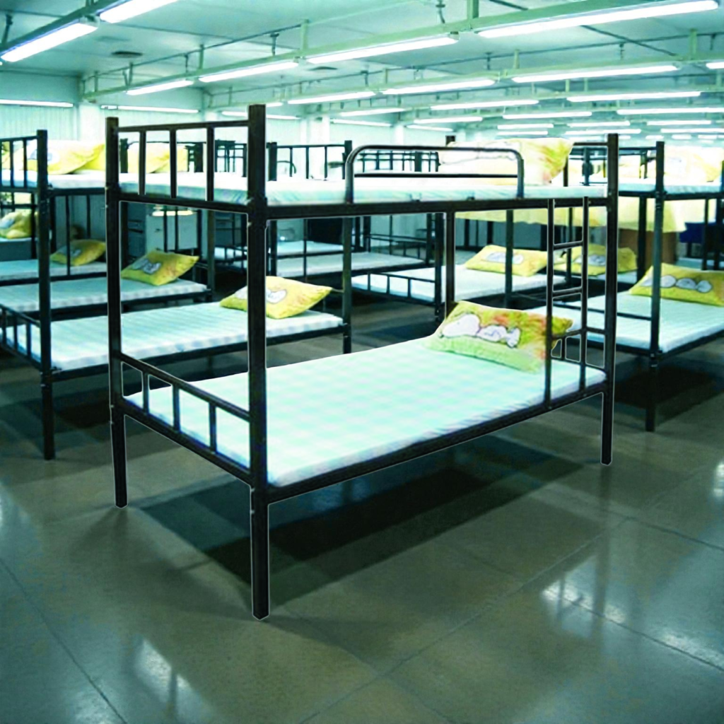 Structura este realizată din profile metalice durabile, cu îmbinări sudate atent pentru a asigura stabilitate maximă. Fiecare pat metalic etajat este tratat și finisat prin vopsire electrostatică, proces care oferă protecție împotriva coroziunii și zgârieturilor.